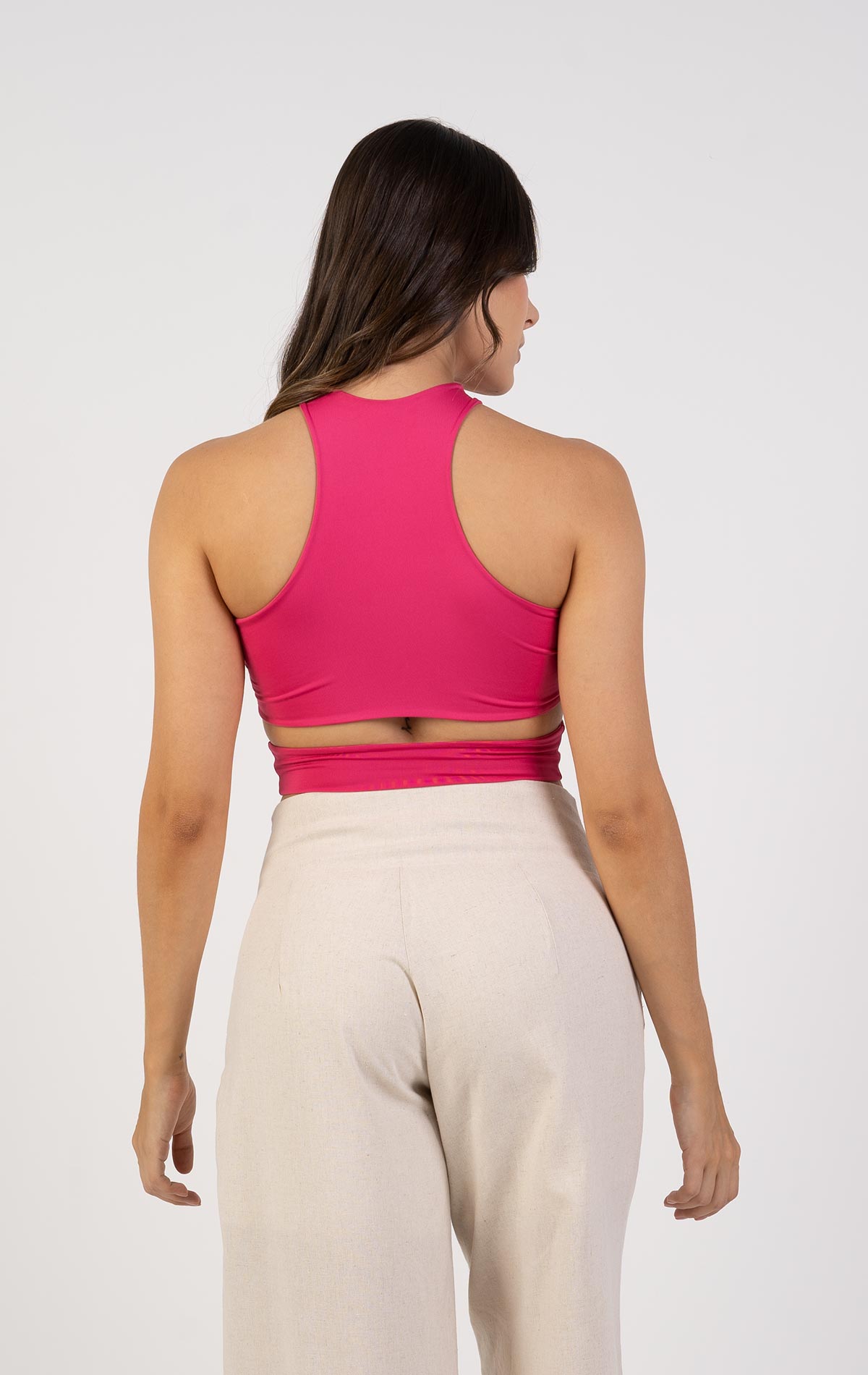 Crop top básico sin mangas, escote griego y corte en los costados.